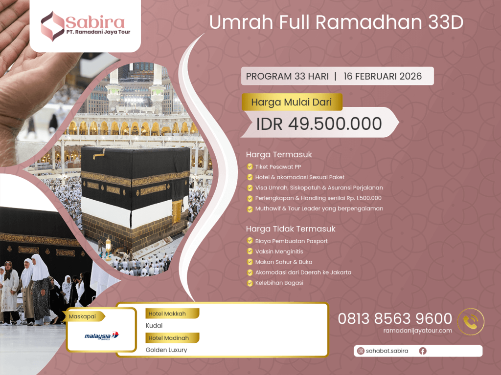 Harga dapat berubah tanpa konfirmasi, menyesuaikan kebijakan Pemerintah Indonesia, Pemerintah Saudi dan Maskapai Penerbangan