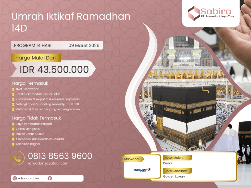 Harga dapat berubah tanpa konfirmasi, menyesuaikan kebijakan Pemerintah Indonesia, Pemerintah Saudi dan Maskapai Penerbangan